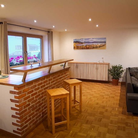 Unsere familienfreundliche Ferienwohnung „Holzeralmblick“ ist in bestem Zustand (2021 renoviert) und schön eingerichtet, um Ihren Aufenthalt bei uns so angenehm wie möglich zu gestalten. Die sehr geräumige Wohnung liegt im Erdgeschoss und verfügt neben einem großzügigen Wohn- und Essbereich über ein Doppelzimmer und zwei Einzelzimmer. Küche und Bad sind ebenfalls neu und sehr gut ausgestattet. Im Außenbereich gibt es eine Sitzmöglichkeit mit Sonnenschutz.